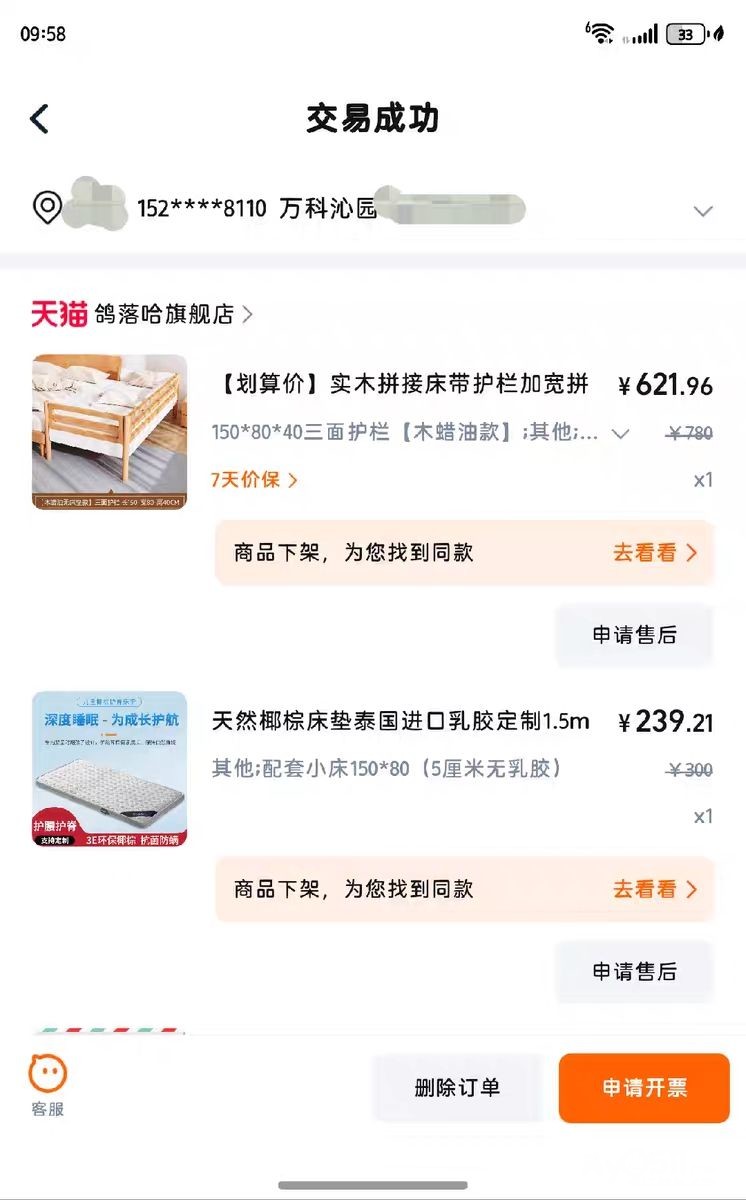 左侧拼大床,三面护栏,暂未拆,纯实木,质量非常好,很结实!成色至少8成新!!