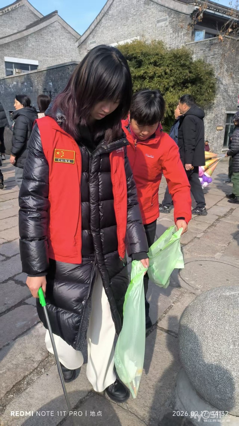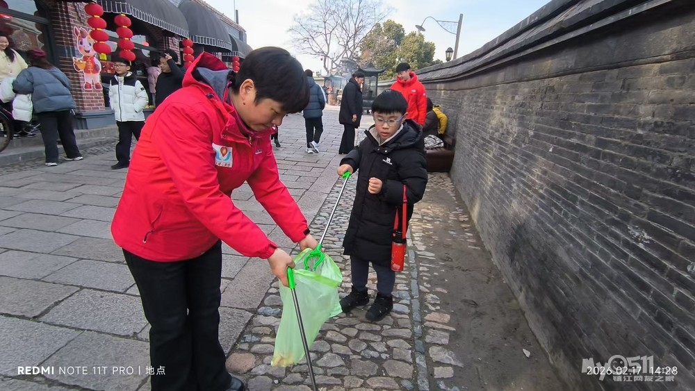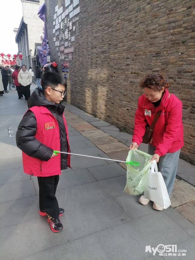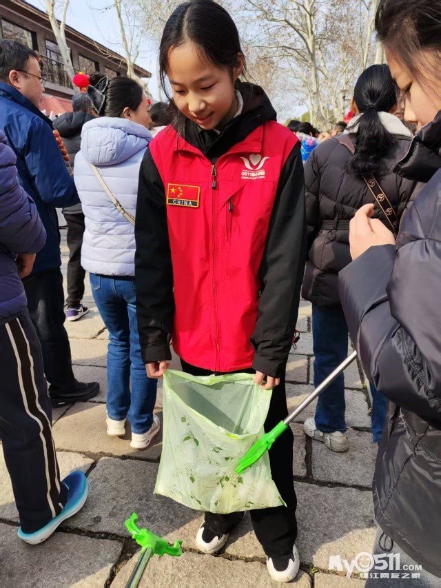这些看似微不足道的善举也影响和感动到一些游客。他们有的主动配合我们,把垃圾扔进我们手中的垃圾袋里,有的把垃圾直接扔进了垃圾桶,有的还为我们竖起了大拇指。我们中有小学生、初中生和大学生,还有退休老师和来镇江过年的客人。有爸爸带着女儿,还有妈妈带着儿子,更有带着自己的同学一起来参加。