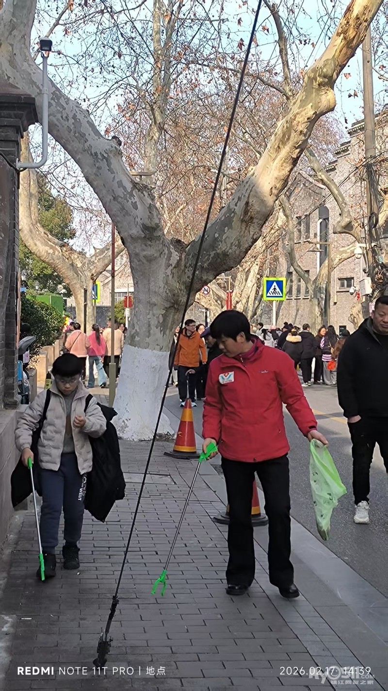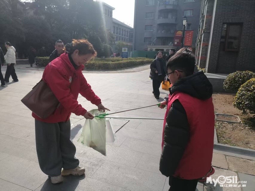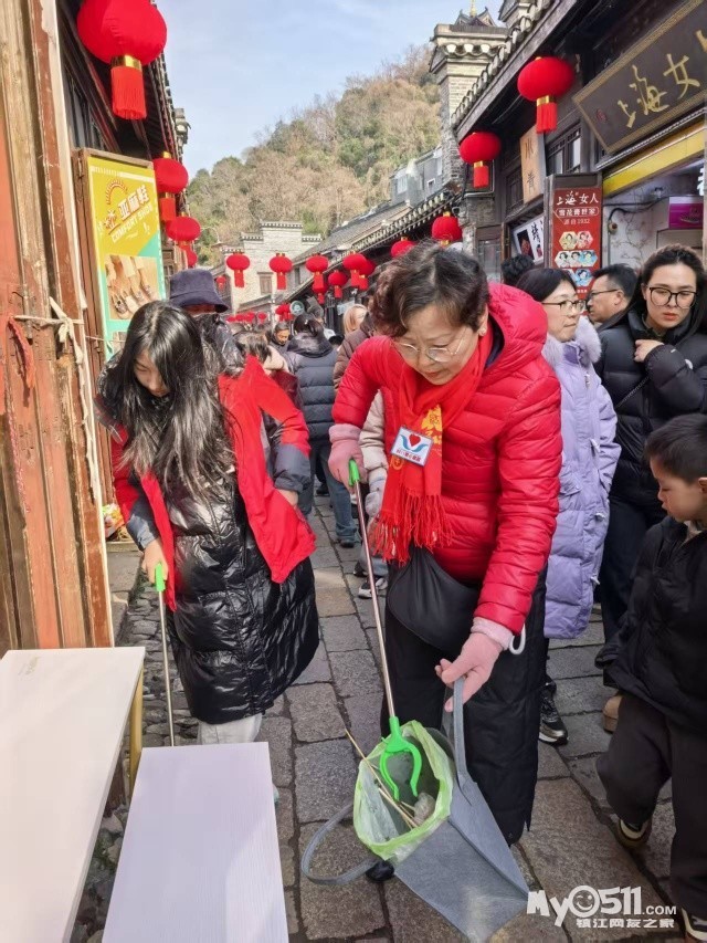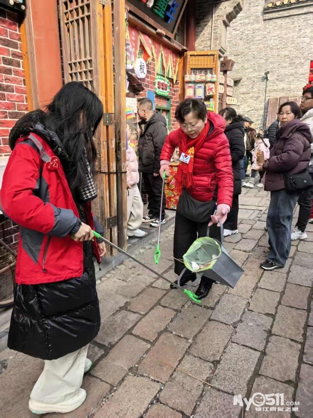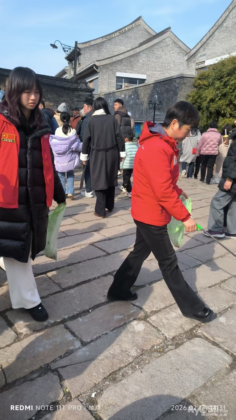 这些看似微不足道的善举也影响和感动到一些游客。他们有的主动配合我们,把垃圾扔进我们手中的垃圾袋里,有的把垃圾直接扔进了垃圾桶,有的还为我们竖起了大拇指。我们中有小学生、初中生和大学生,还有退休老师和来镇江过年的客人。有爸爸带着女儿,还有妈妈带着儿子,更有带着自己的同学一起来参加。