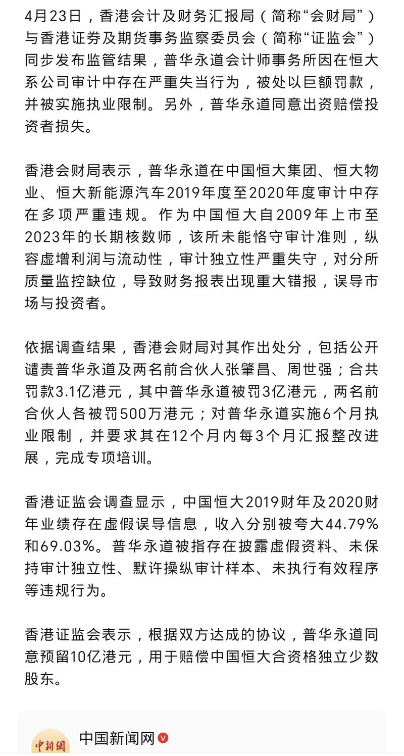 普华永道审计失当,被罚3.1亿港元并赔10亿港元!