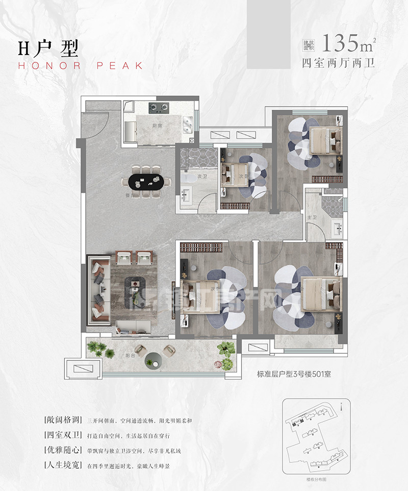 3#(26层) 135㎡ 105㎡/105㎡ 135㎡ 2梯4户1单元