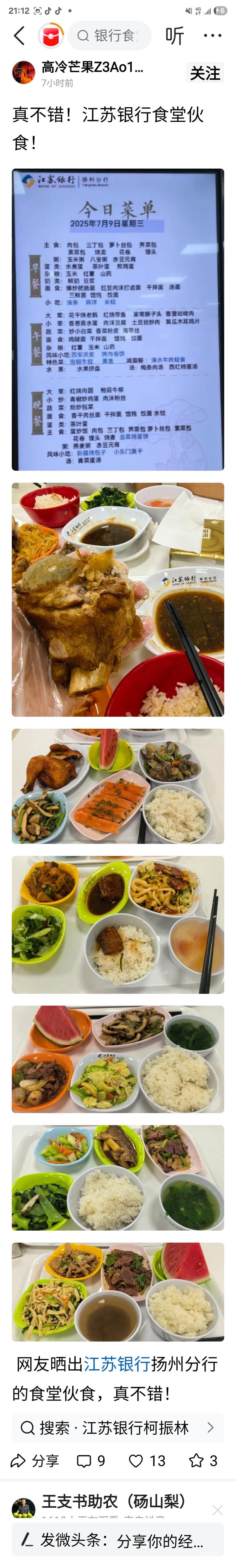 你不要再无知了,江苏银行镇江分行规模仅次于几大国有银行,有食堂不是很正常吗?你认知太低了