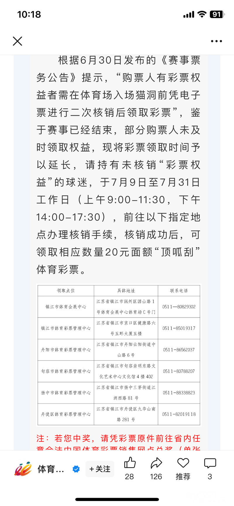 » 上个苏超镇江主场的彩票没领取的,月底前还能领取。