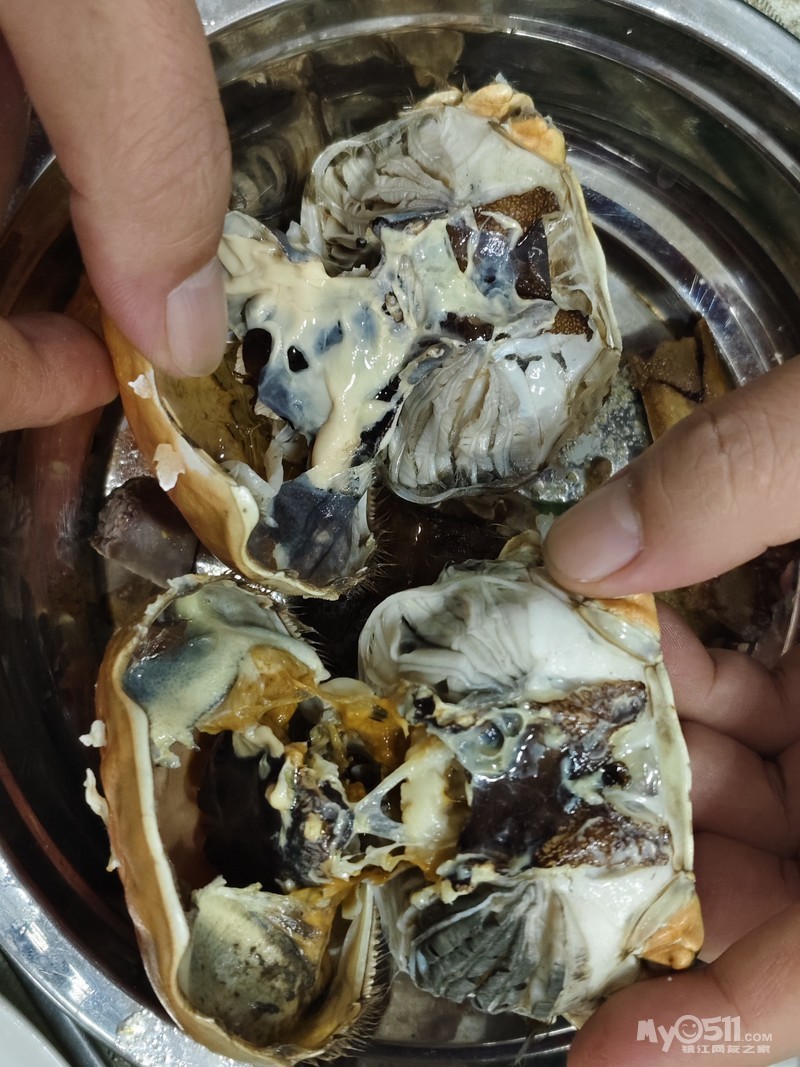 前几天早上,偶尔经过丹徒瑞泰菜场北门,看到固城湖螃蟹店有残蟹卖,母蟹45元,买了五只,回来蒸一下,发现一个蟹是空的,不能吃了,第二天找到店里,之前不知道坏蟹不能退,老板娘说残蟹不包退赔,真是倒霉透了,一只蟹大概十来块钱没了。更气人的是,老板娘直接狠声恶气的说,下次不要再买她的蟹了,不欢迎我们此类消费者,说好蟹吃不起,竟然买残蟹吃,这个真的太伤人了,确实是没钱吗?可能也是啊!