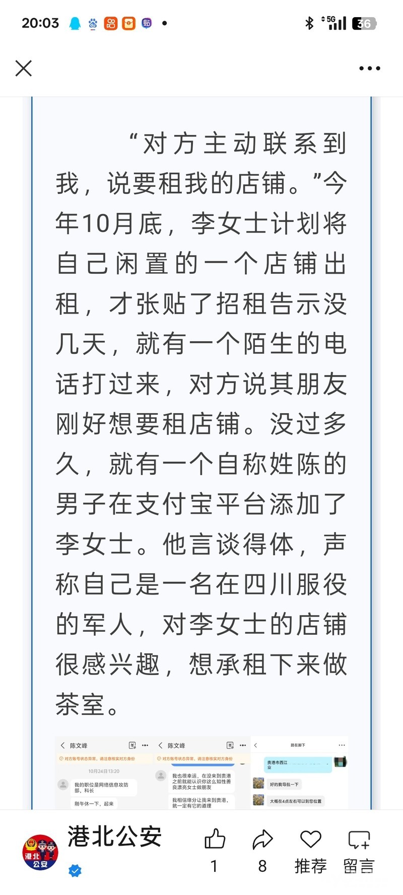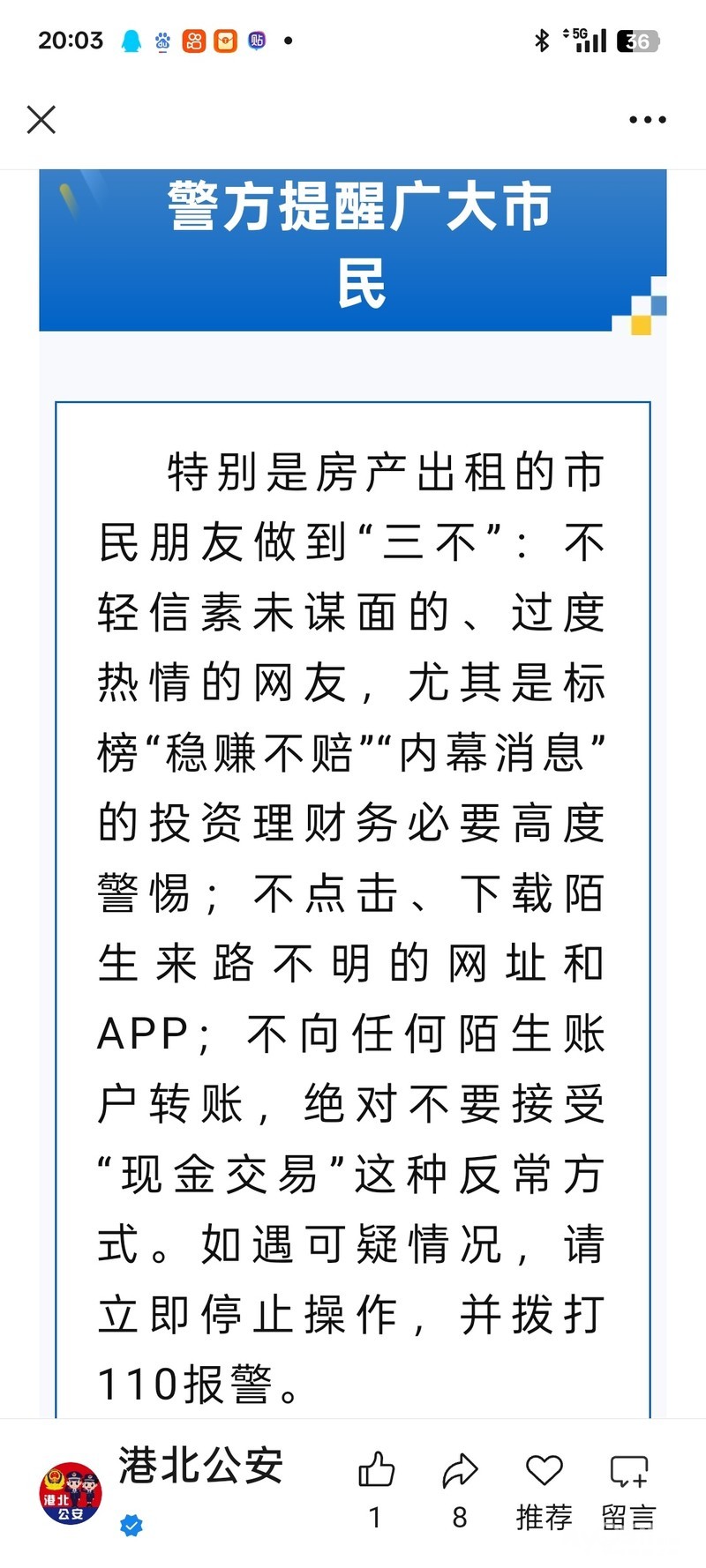 这骗局流行有段时间了,为防诈骗,警方提示,出租房屋,带租赁户一同到派出所备案,必须的。