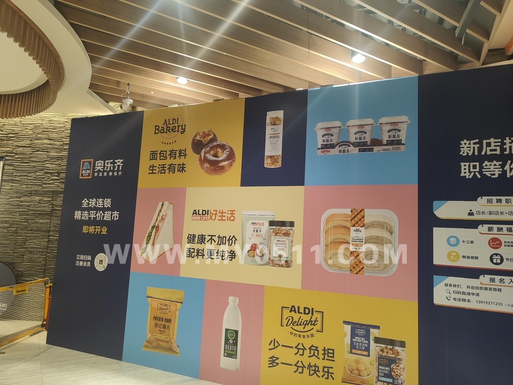 之前网上一直刷到奥乐齐,刚路过凤凰广场看到工人正在布置,看来奥乐齐首店很快要和大家见面了