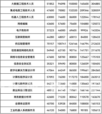 记者梳理发现在公布的不同职业人群中工资价位排在前三位的均为数字经济产业从业人员
