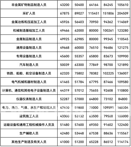 在不同职业从业人员工资价位中