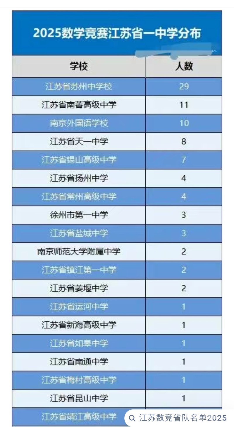 » 2025年公布的全国数学联赛获得江苏省一等奖学生名单共计96人。镇江一中2人。