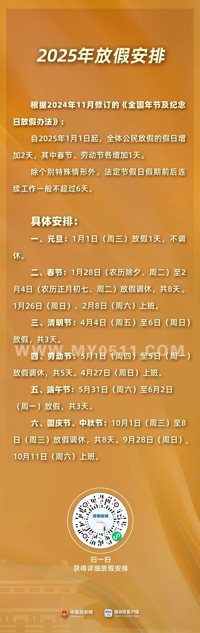 今年法定节假日放假调休天数
