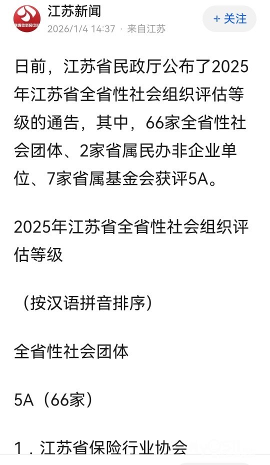 » 结果出炉!江苏这些社会组织获评5A