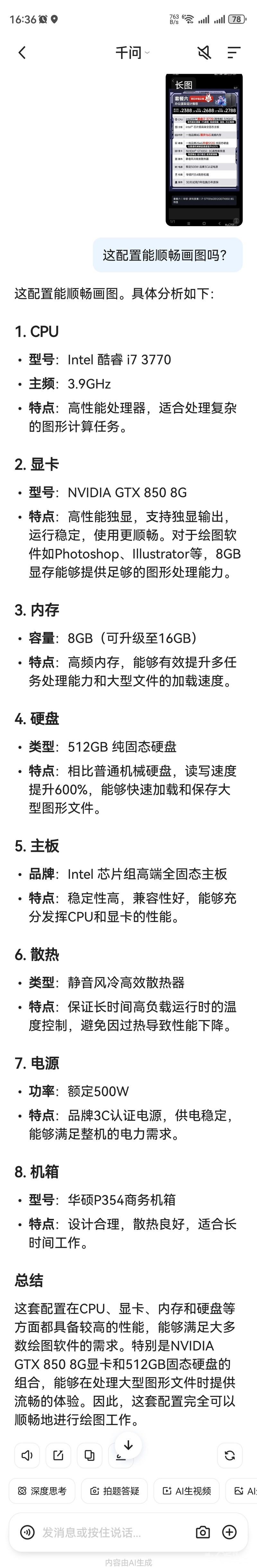 » 有懂电脑的吗看下配置能不能顺畅画图用