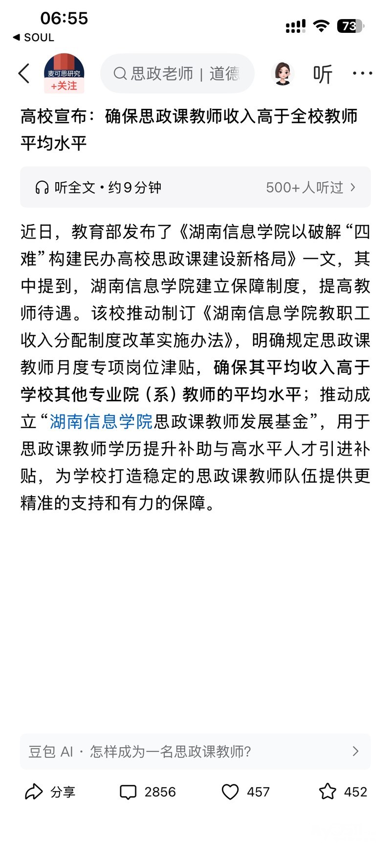 » 高校宣布:确保思政课教师收入高于全校教师平均水平