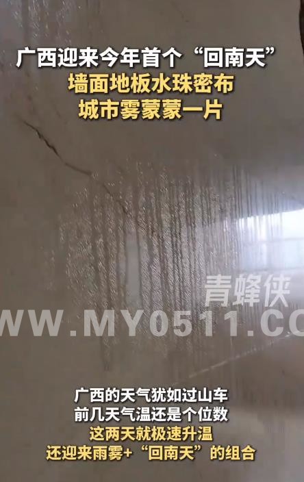 » 广西迎来今年首个“回南天”:墙面地板水珠密布,城市雾蒙蒙一片