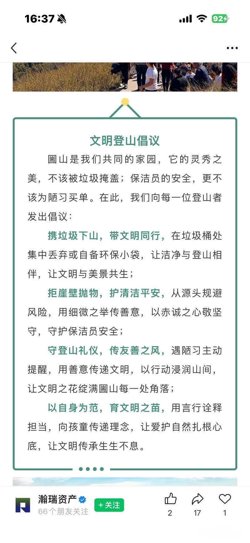 » 致登山者:圌山青绿需守护,文明登山共践行