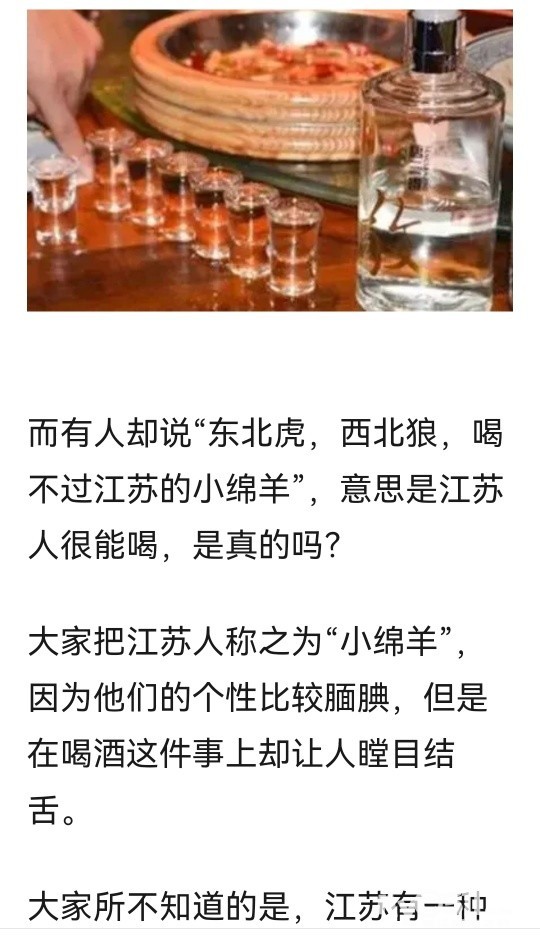 » 有人说“东北虎,西北狼,喝不过江苏小绵羊”,江苏人很能喝吗?