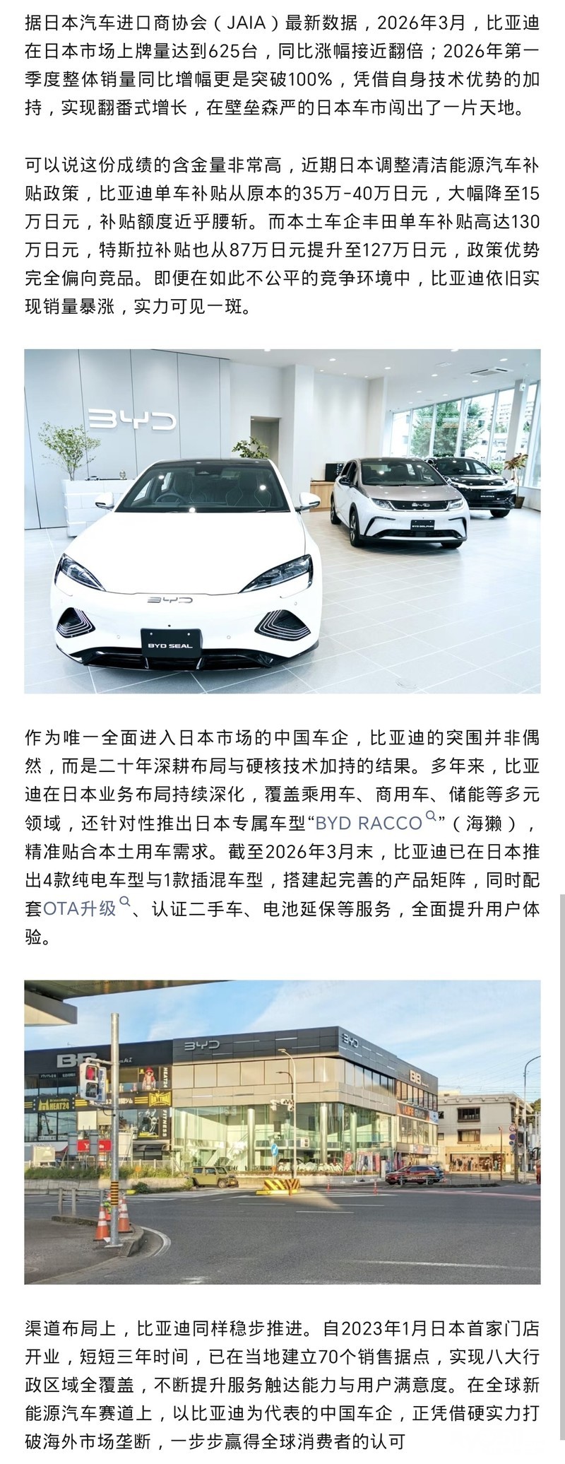小日本给特斯拉和他们本国车的补贴高,给比亚迪的比较低