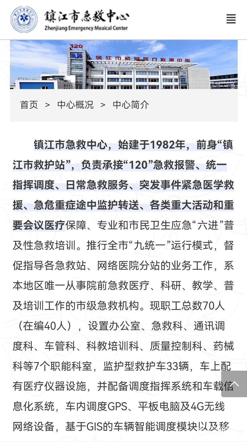 “镇江市急救中心” 车身上不写着呢吗?