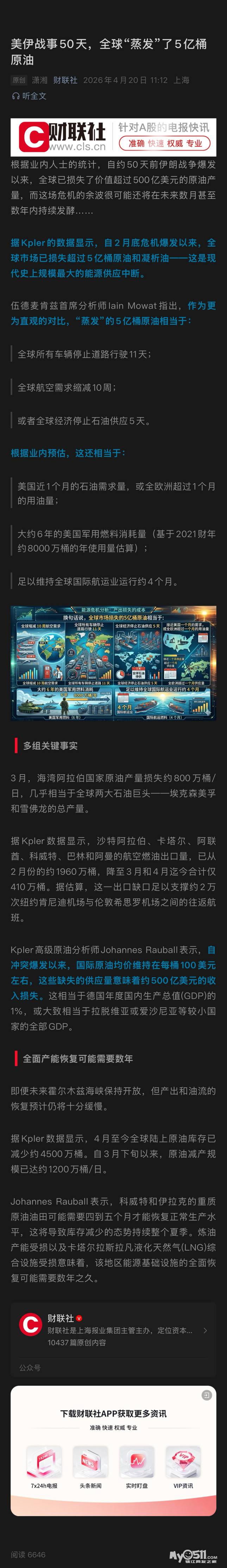 » 美伊战事50天,全球“蒸发”了5亿桶原油