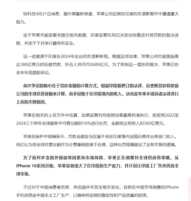 » 苹果在印度遭殃:反垄断案罚款有望达380亿美元
