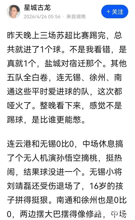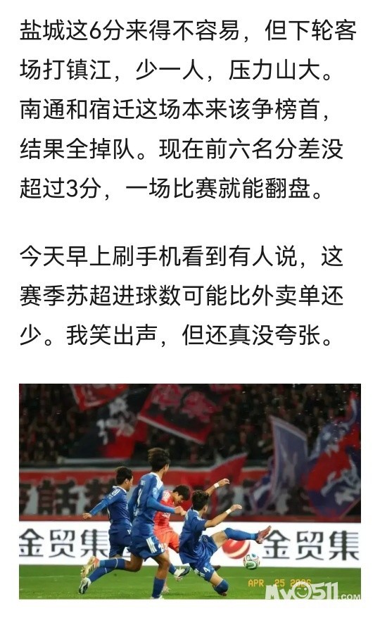 盐城6分领跑,苏超进球比快递还慢,下轮谁先破蛋?