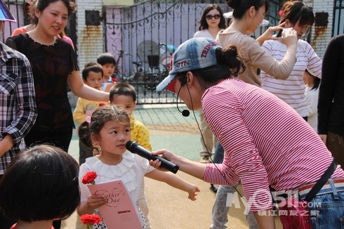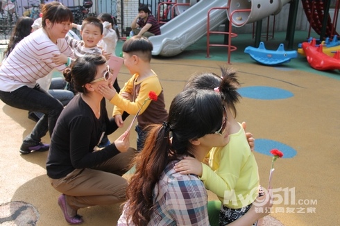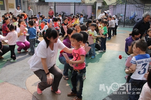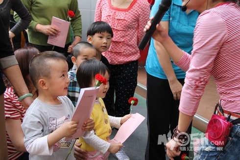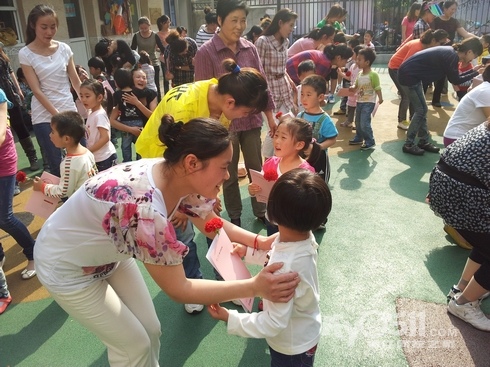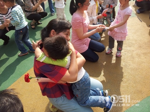2012年的母亲节即将来临,5月11号下午,京河路幼儿园进行了一场别开生面的“母亲节亲子体操”活动,孩子们用稚嫩的小手拉着妈妈舞动起来,相拥相抱的亲子操使参加活动的妈妈们倍受感动,感慨万分!当孩子们为妈妈送上鲜花,大声说:“妈妈!我永远永远的爱您!”时,温暖幸福的微笑荡漾在孩子和妈妈的脸上。