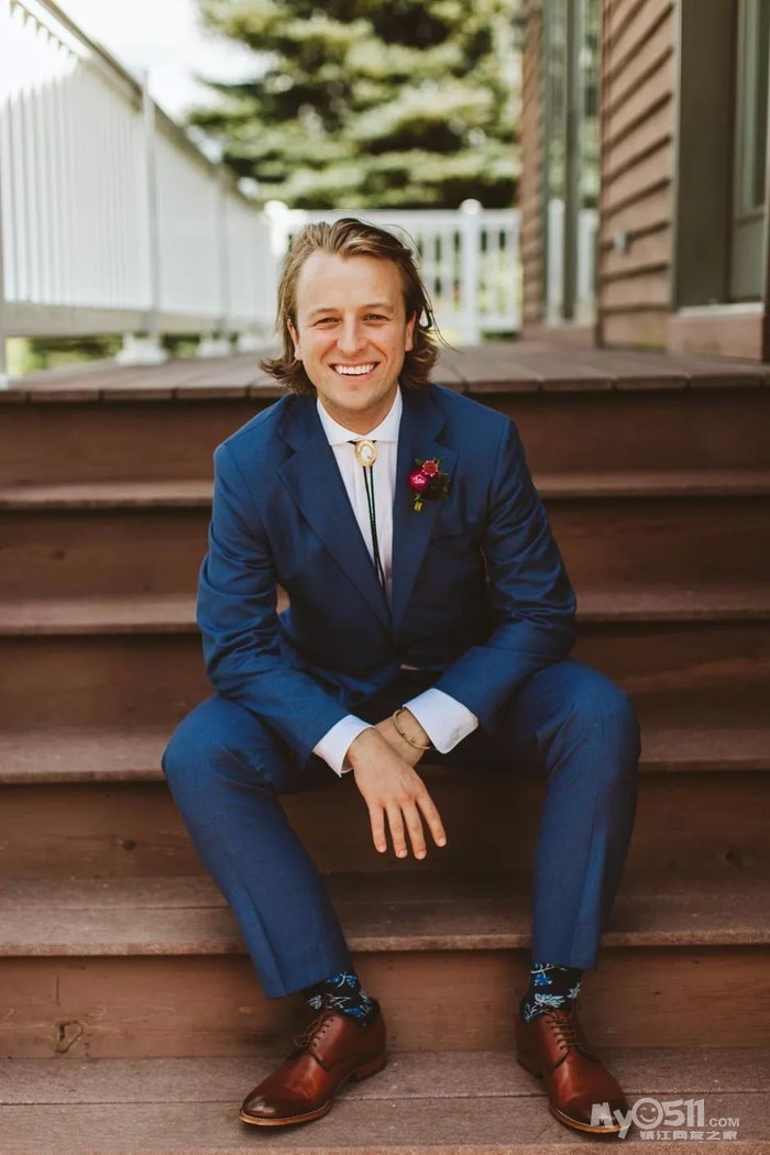 新郎的 bolo tie 就像整个人的 “中轴线”,比常见的领带、领结要显得更骚气~