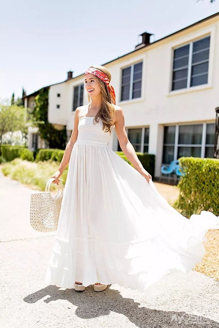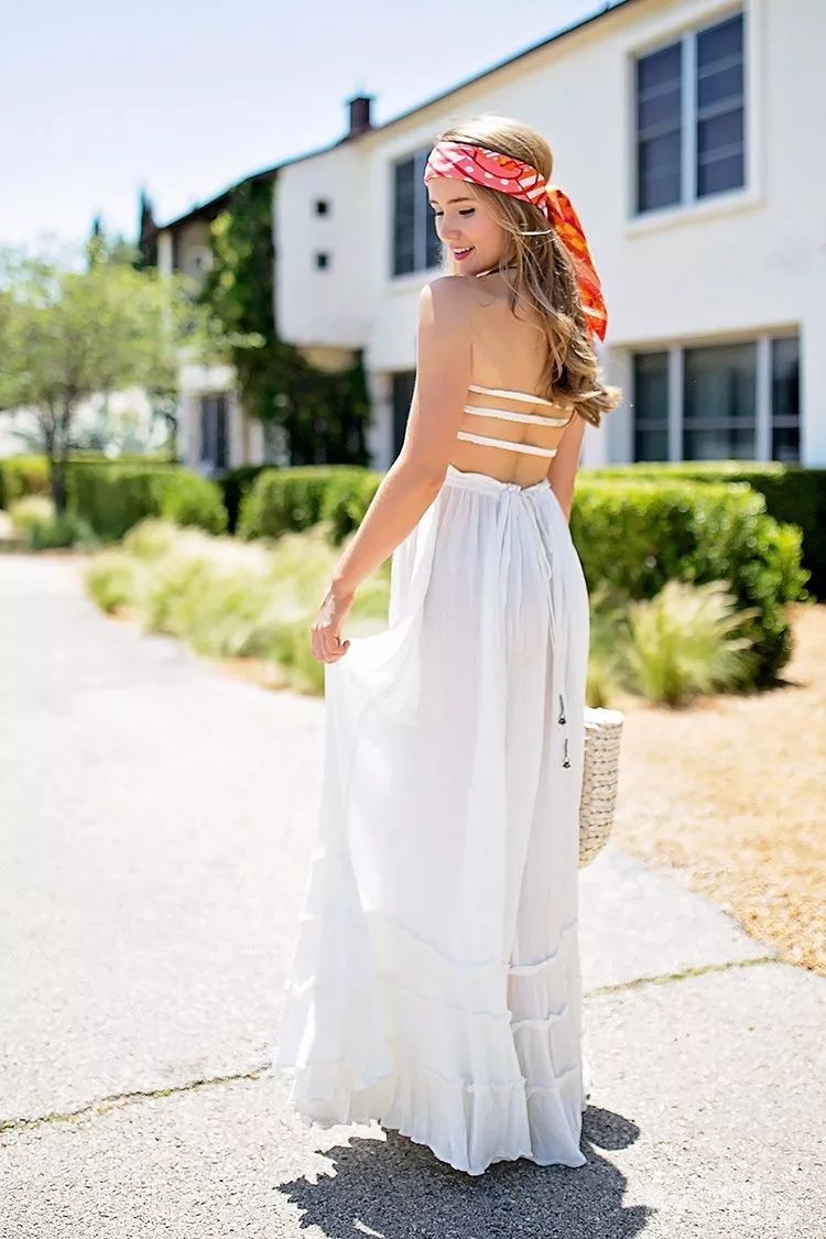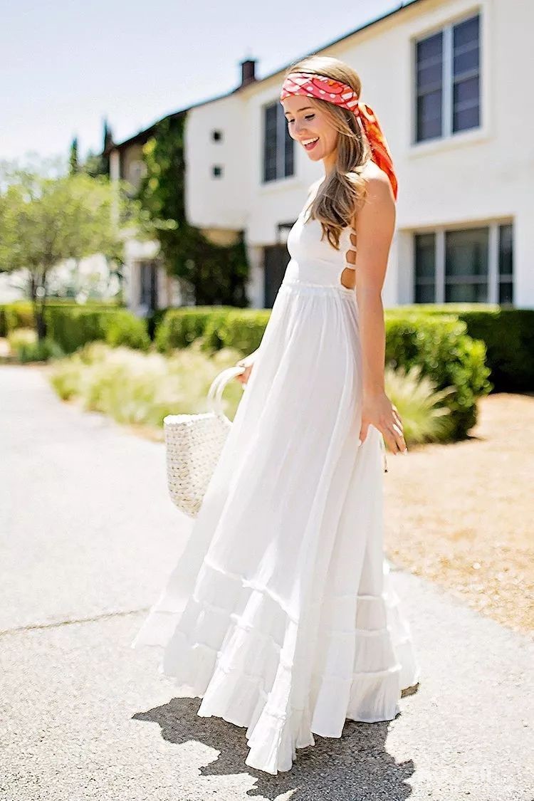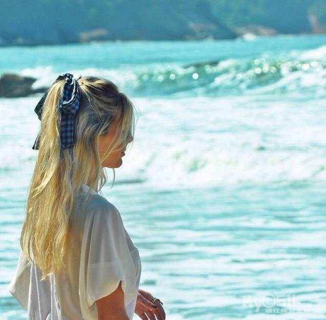 把丝巾当作头饰,很简单地系在头上就超美。