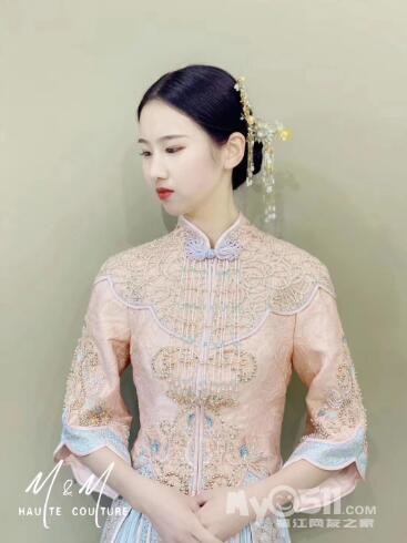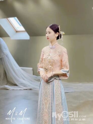 在网上和实体店都去看过了,看中了几款 样式差不多是这种样子的,纠结选哪款,有没有结婚中式没有选择大红,选择粉色的哈,听心水的,又怕长辈不能接受,哎~