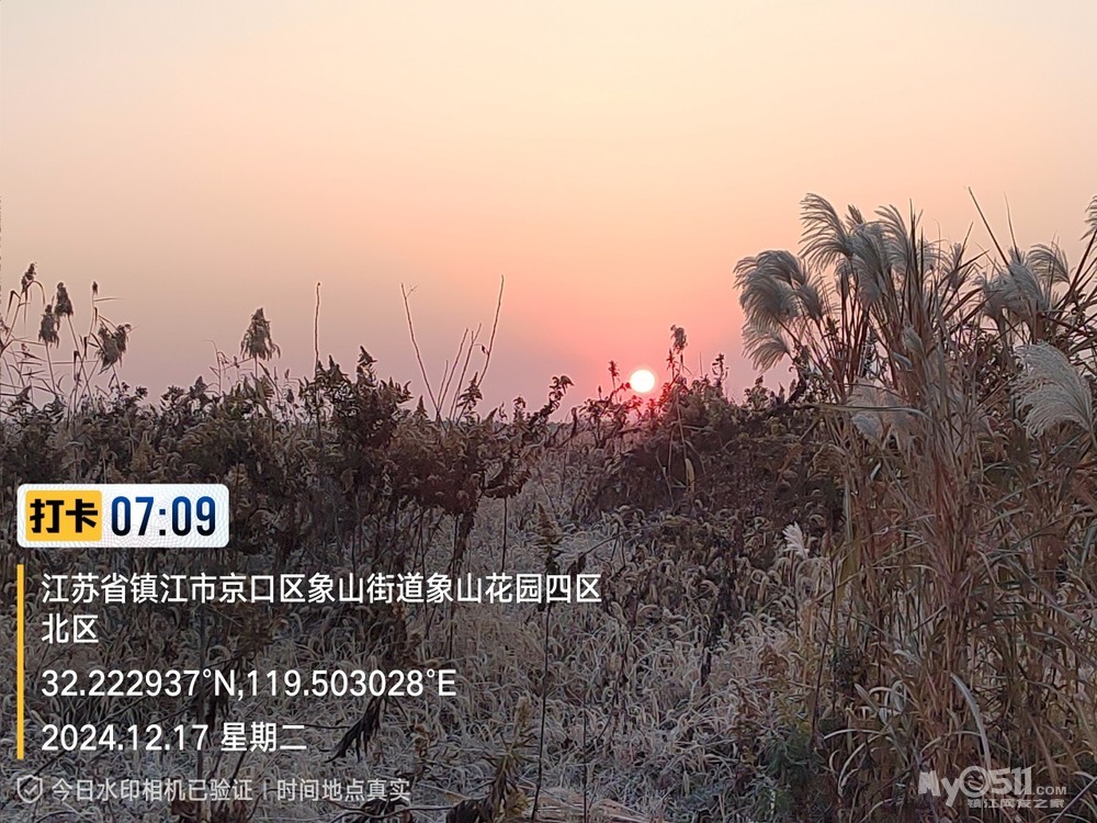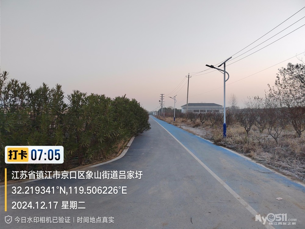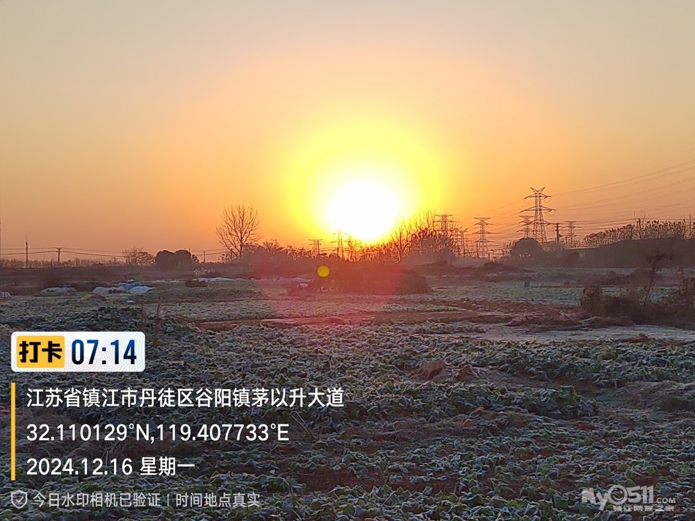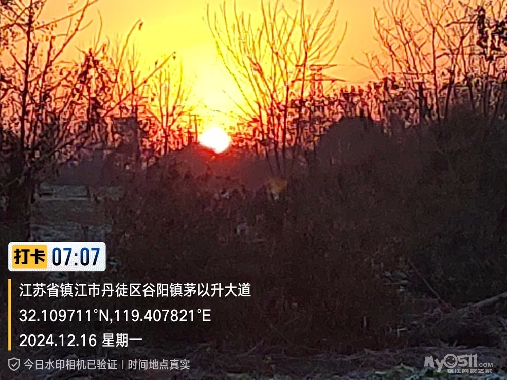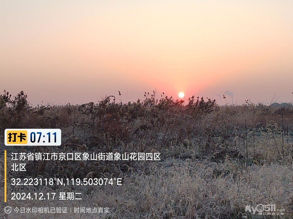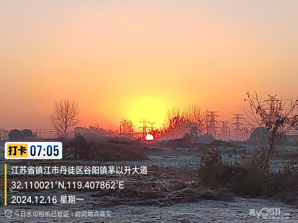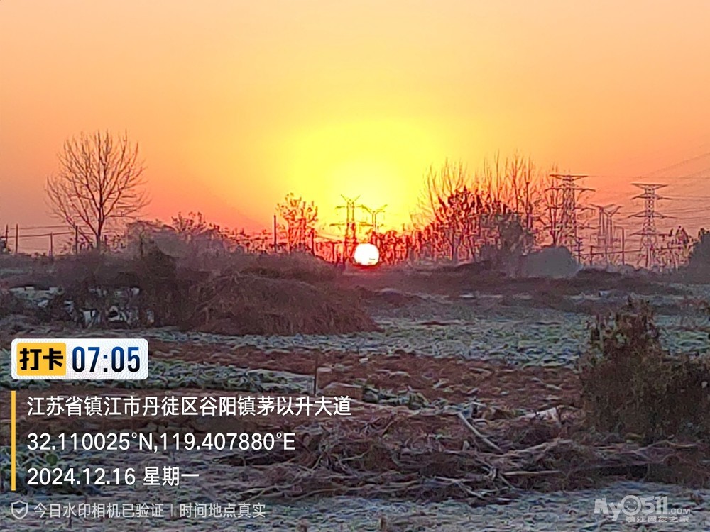 今早5点52分出发晨,沿健康路、正东路、学府路、禹山路、千棵柳、在经检察整改的东东垃圾填埋场看日出,汝山路、京江路、航道路、征润州路、中山北路、到米方路大菜场买菜后,经朱方路、中山路、于9点35分平安到家。