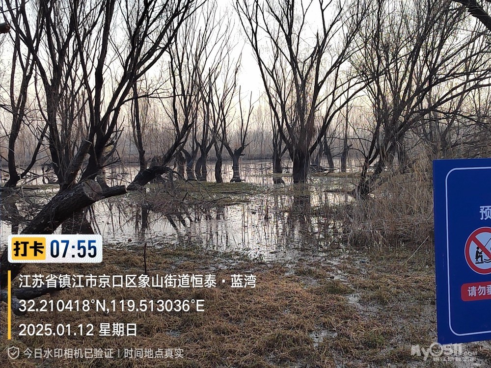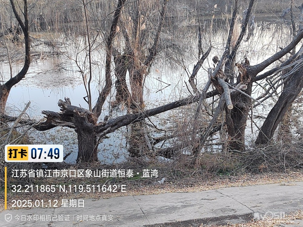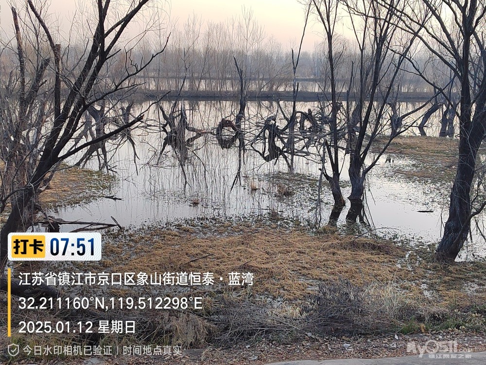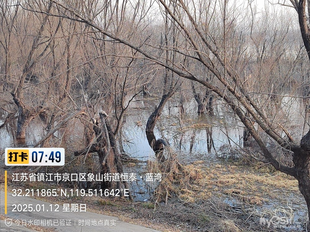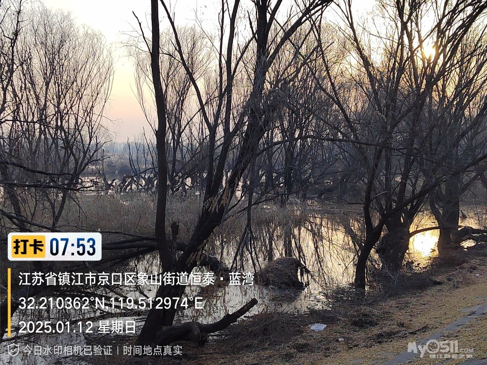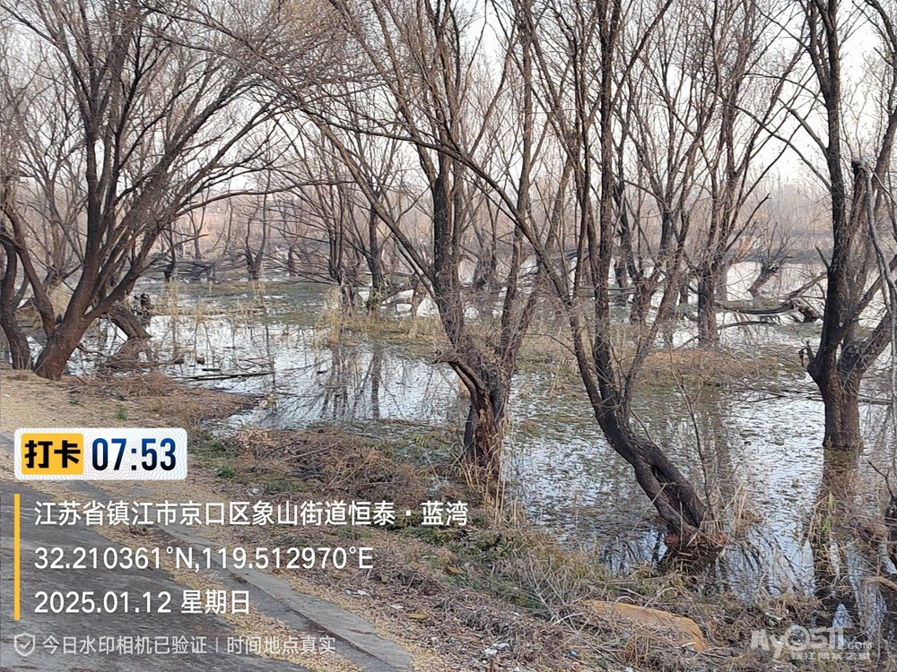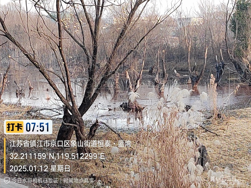 2025年1月12日,星期天、天气预报晴、空气质量优、气温—3——9度、微东北风。早6点10分出发晨骑,沿中山路、解放路、长江路、运粮河西岸、丰润街、征润州路、环湖路、菱苇路、航道路、江海之门、京江路、焦南闸、厡城东垃圾填埋场、千棵柳湿地、江大北门、禹山路、学府路、焦山路、京口路、学府路、正东路、南门大街、观音桥巷、市政路、将军巷,于9点6分平安到家。