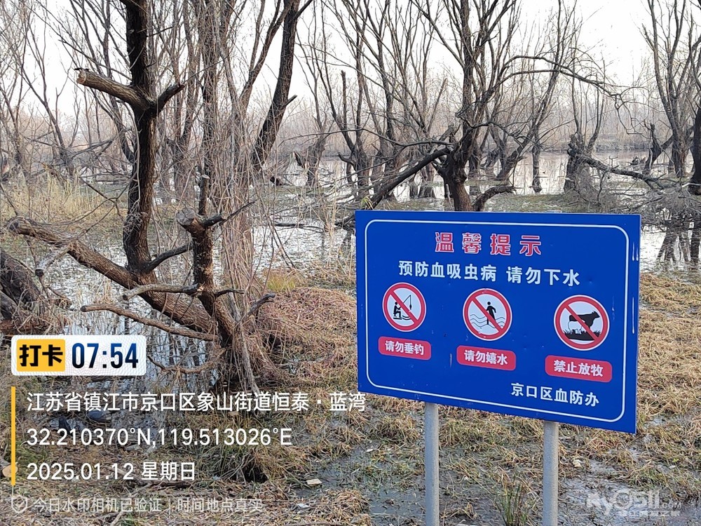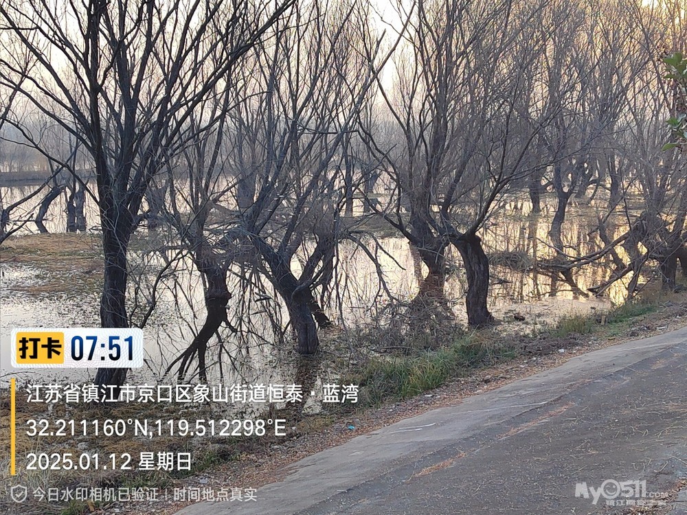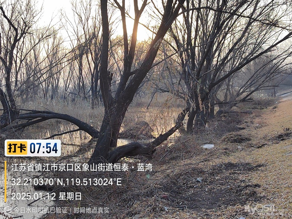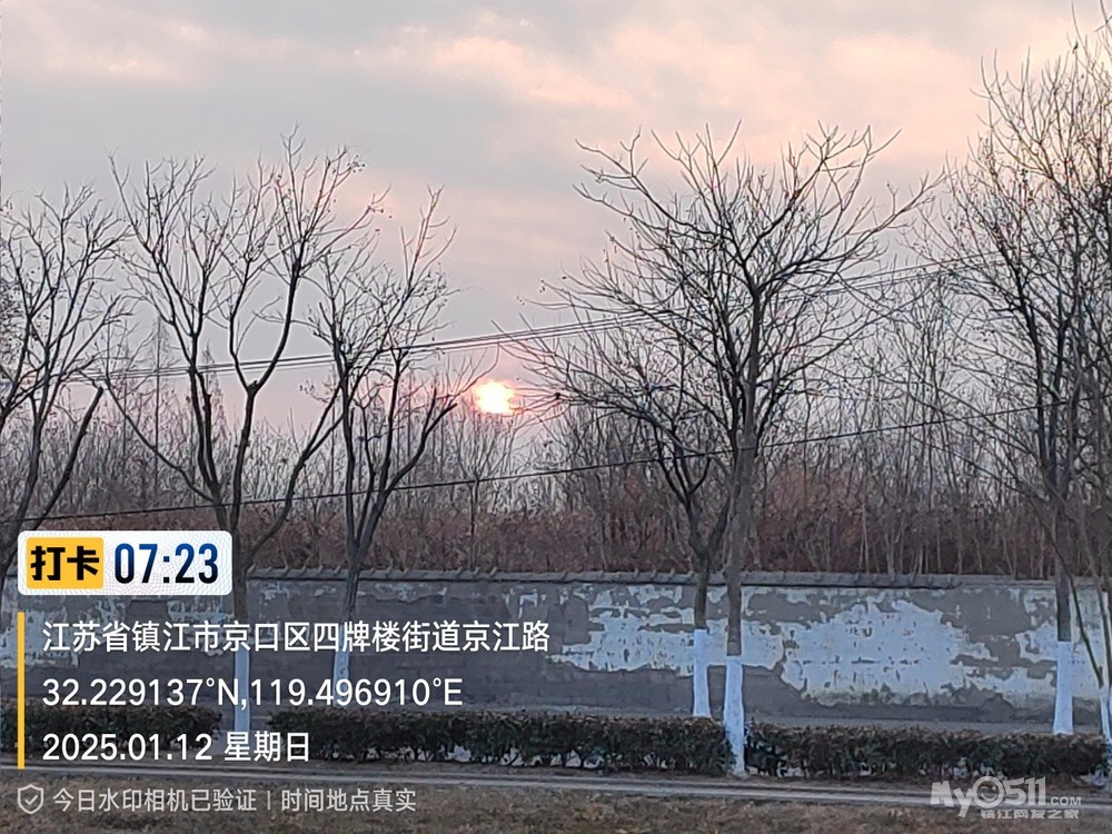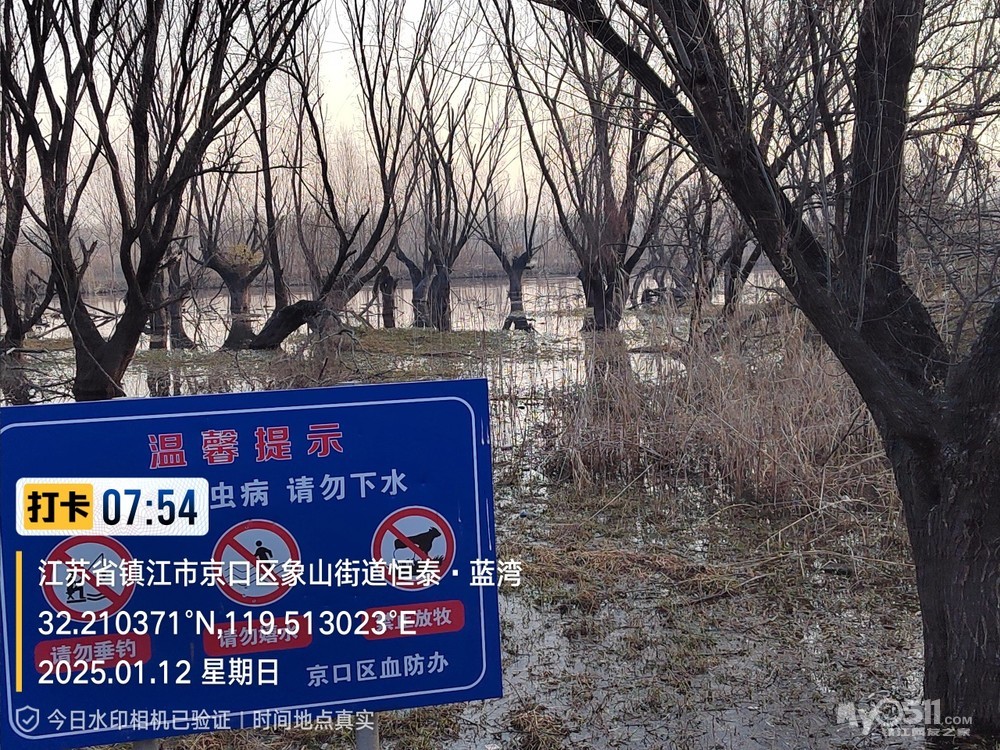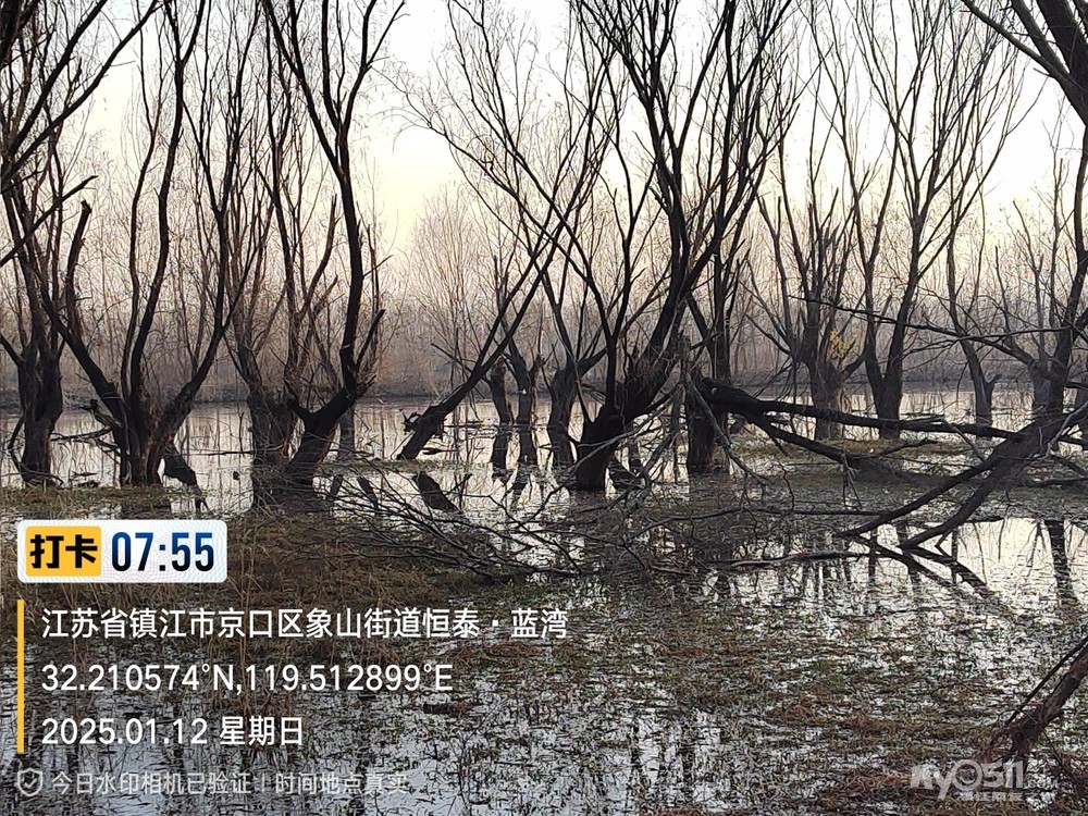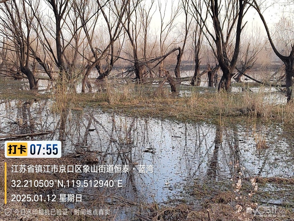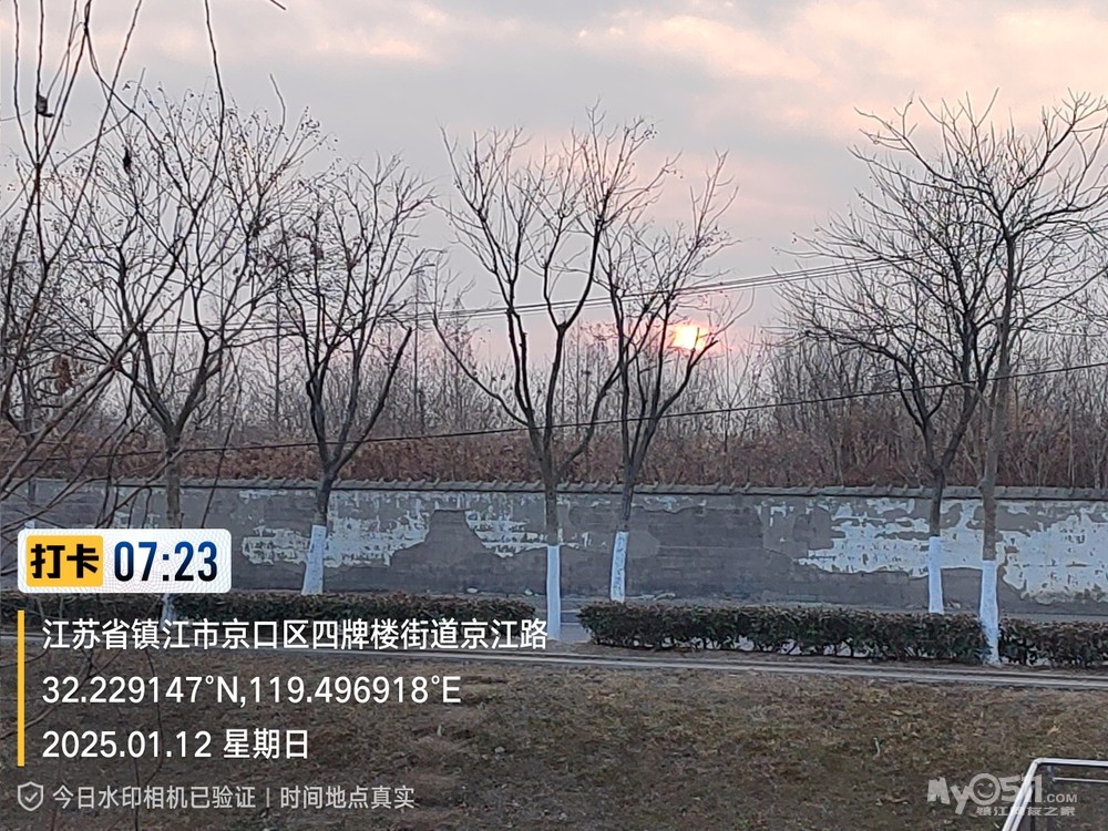 2025年1月12日,星期天、天气预报晴、空气质量优、气温—3——9度、微东北风。早6点10分出发晨骑,沿中山路、解放路、长江路、运粮河西岸、丰润街、征润州路、环湖路、菱苇路、航道路、江海之门、京江路、焦南闸、厡城东垃圾填埋场、千棵柳湿地、江大北门、禹山路、学府路、焦山路、京口路、学府路、正东路、南门大街、观音桥巷、市政路、将军巷,于9点6分平安到家。