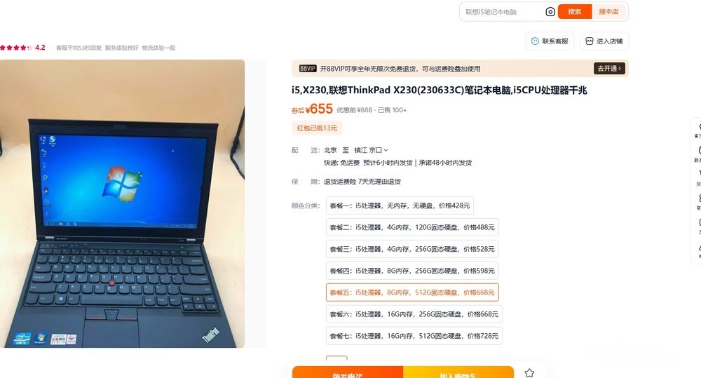 出淘宝同配置二手笔记本,350元