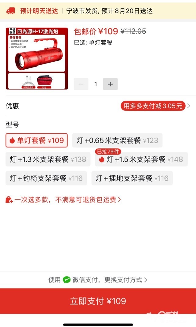 三色调光,1.1米三角支架。真心话,一时兴起,买回来只用了一次,现在的电还是100%。160元处理。
