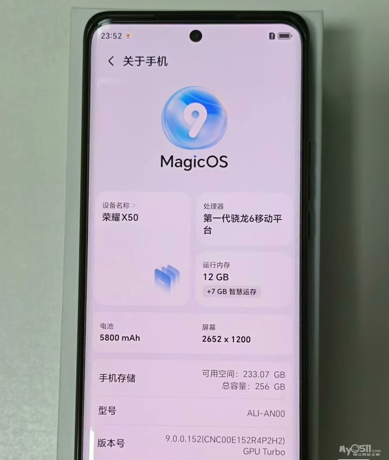 荣耀X50 典雅黑 12+256G,全原5800毫安大电池,超级耐用。外观成色99新,边框无磕碰,很少使用。全套盒子都在,750元。电话:15162979909