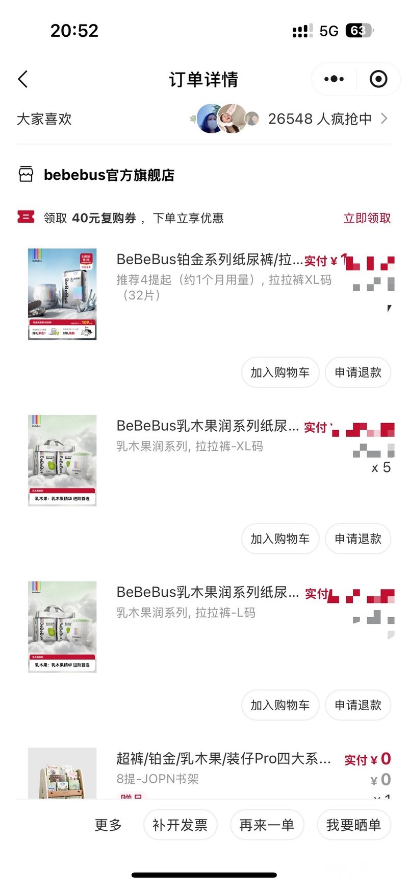 Bebebus乳木果润系列L码拉拉裤,官方旗舰店购入,孩子嫌小,现70一包出,一共3包,每包36片,需要的自提