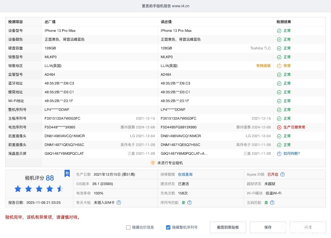 iPhone13proMAX 美版128G,有锁,需配合卡贴使用,成色还可以,换过电池。1800出售。联系191_0511_0830微信feiyu110830