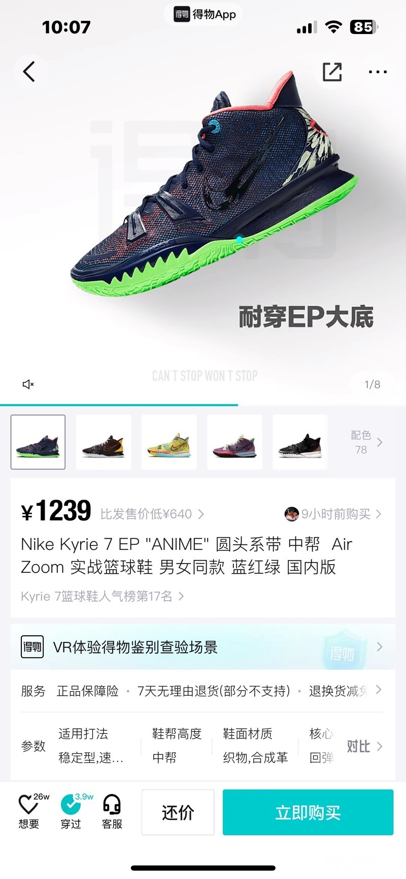 处理一双99新篮球鞋,42码,没有上过水泥地,没有上过一次对抗,品质看得见。需要的私