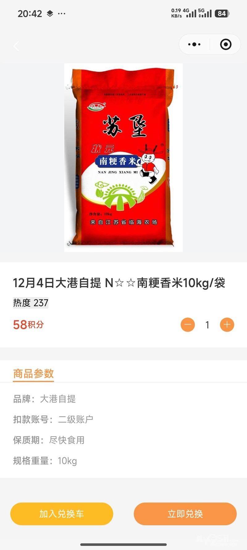 因为 是单位 发给我们的福利,所以 现 便宜出售 56元一袋. 一袋是20斤.