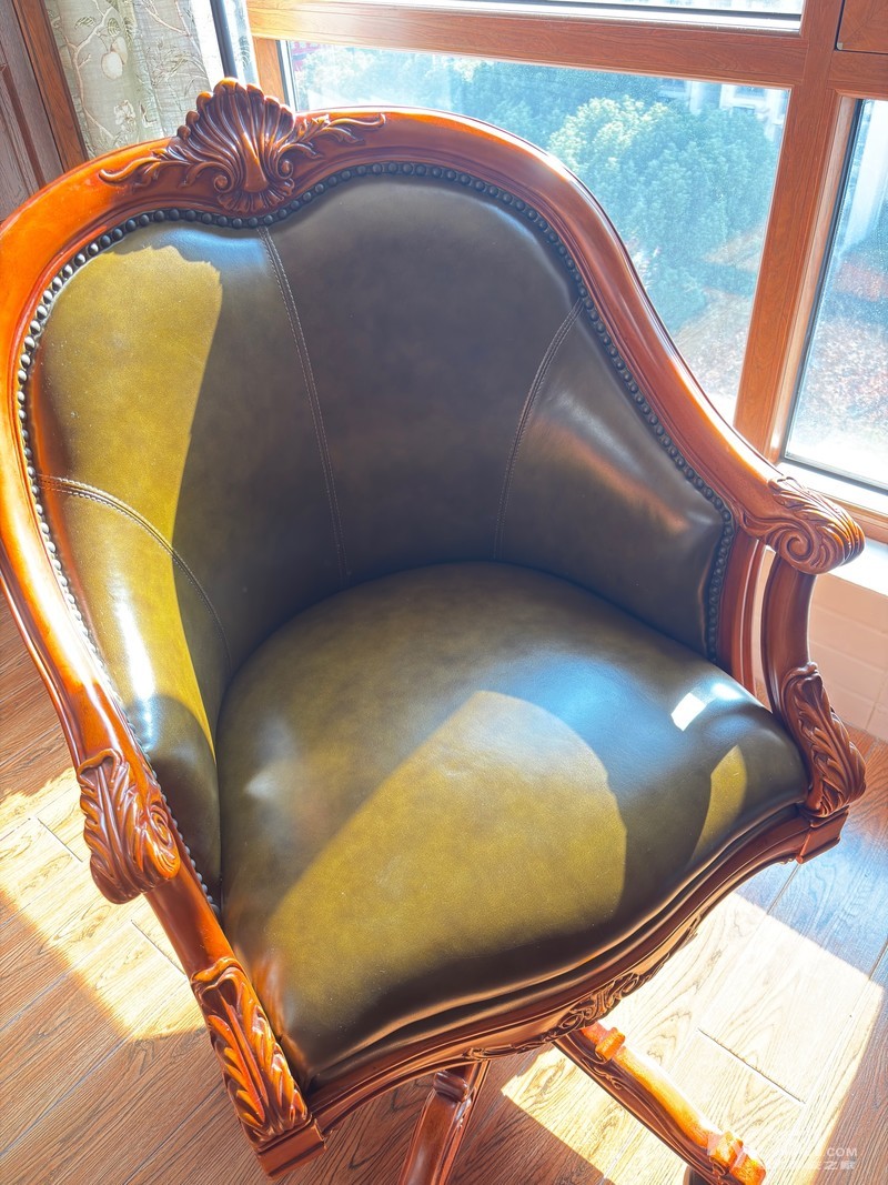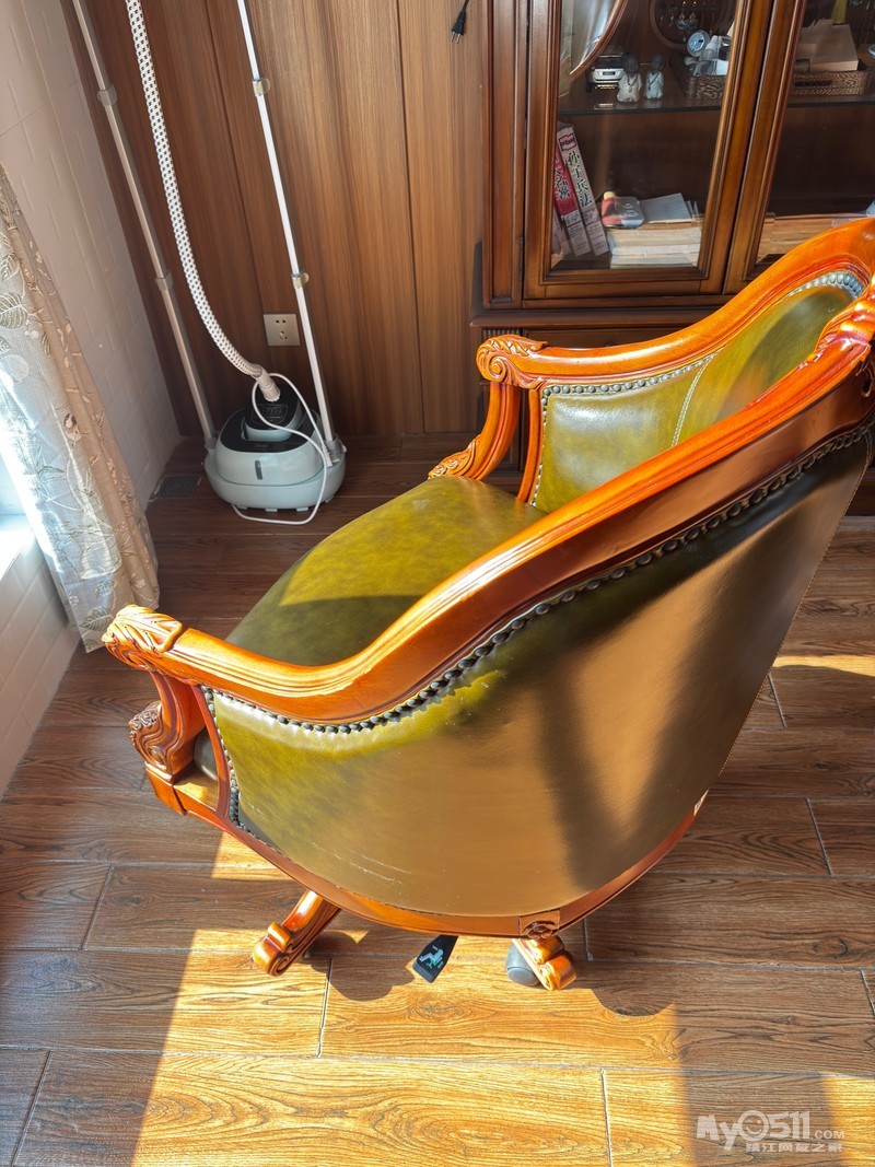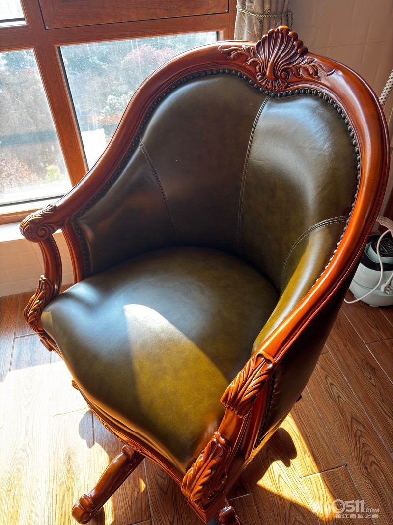 » 出售全新美式实木真皮电脑椅休闲椅一张