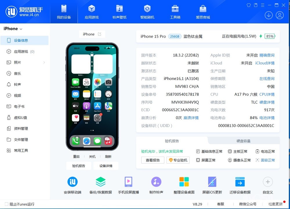 纯原苹果15pro国行256G 电池容量83% 外壳无磕碰,正常磨损,屏幕无划痕,面容正常,无维修,纯原,纯原,只有原盒。18系统非常好用,充电器自己要用。