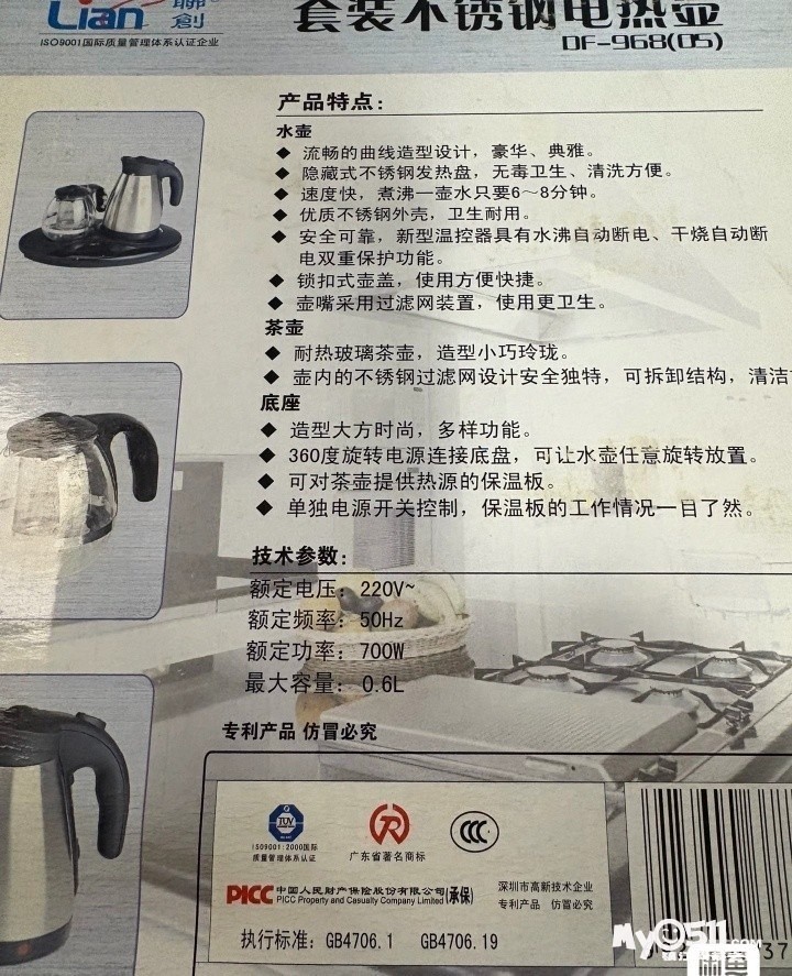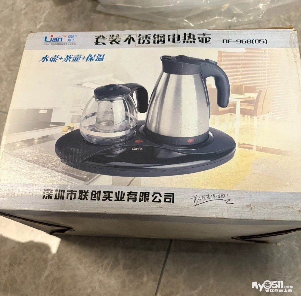 联创不锈钢电热水壶套装DF-968,全新未使用!一套包含水壶+茶壶+保温功能,0.6L容量,700W功率。