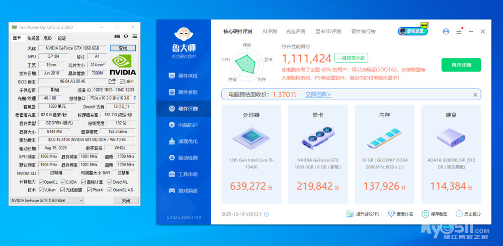 出自用I5 13400处理器和影驰1060 6G显卡
