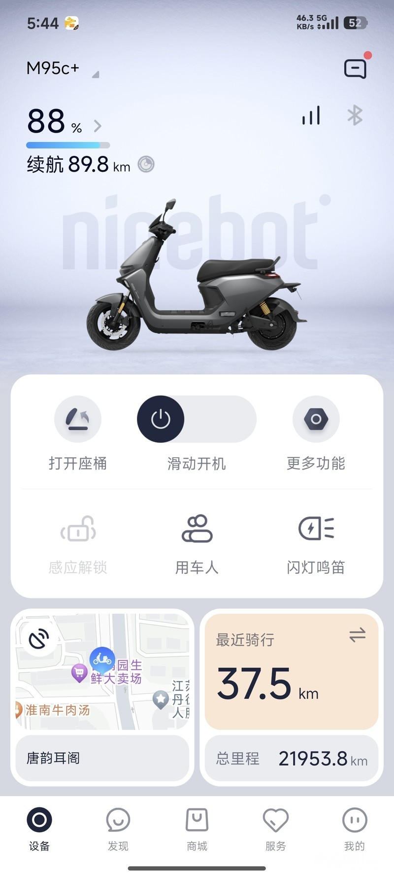 出九号电动M95C+电动车,72v32新换铅酸电池,72V大电压,续航65km+,动力足,骑着很舒服。智能仪表盘显示清楚,支持APP远程控制,感应解锁,功能都正常。外观有点使用痕迹,整体成色还可以,无拆修,配置全原装。镇江同城自提,不包邮。有意者私聊。