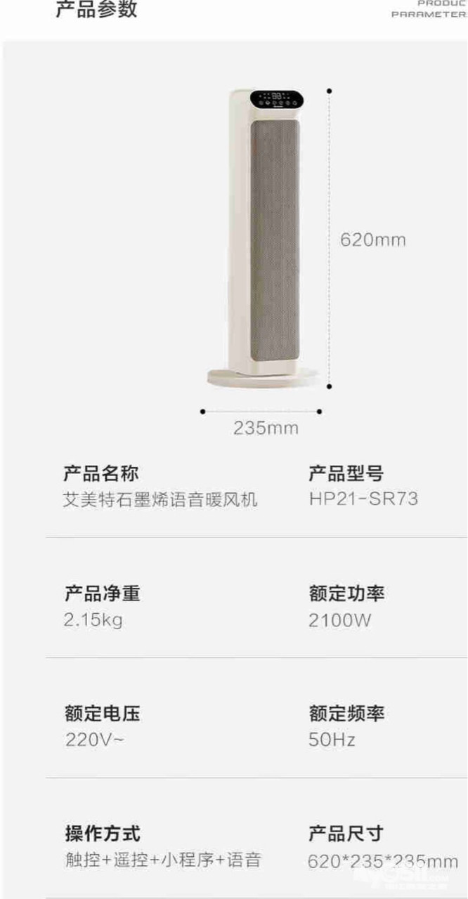 全新,原包装未拆封艾美特(AIRMATE)石墨烯语音款暖风机 SR73