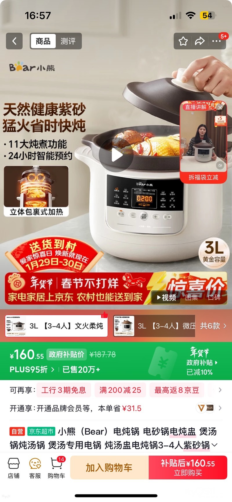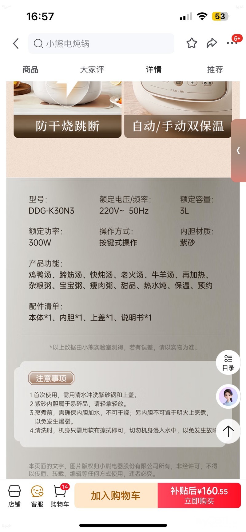 小熊(Bear)电炖锅 电砂锅电炖盅 煲汤锅炖汤锅 煲汤专用电锅 炖汤盅电炖锅3-4人紫砂锅煲汤3L煮粥锅DDG-K30N3 公司发的还没有拆包装 有需要的120上门自提