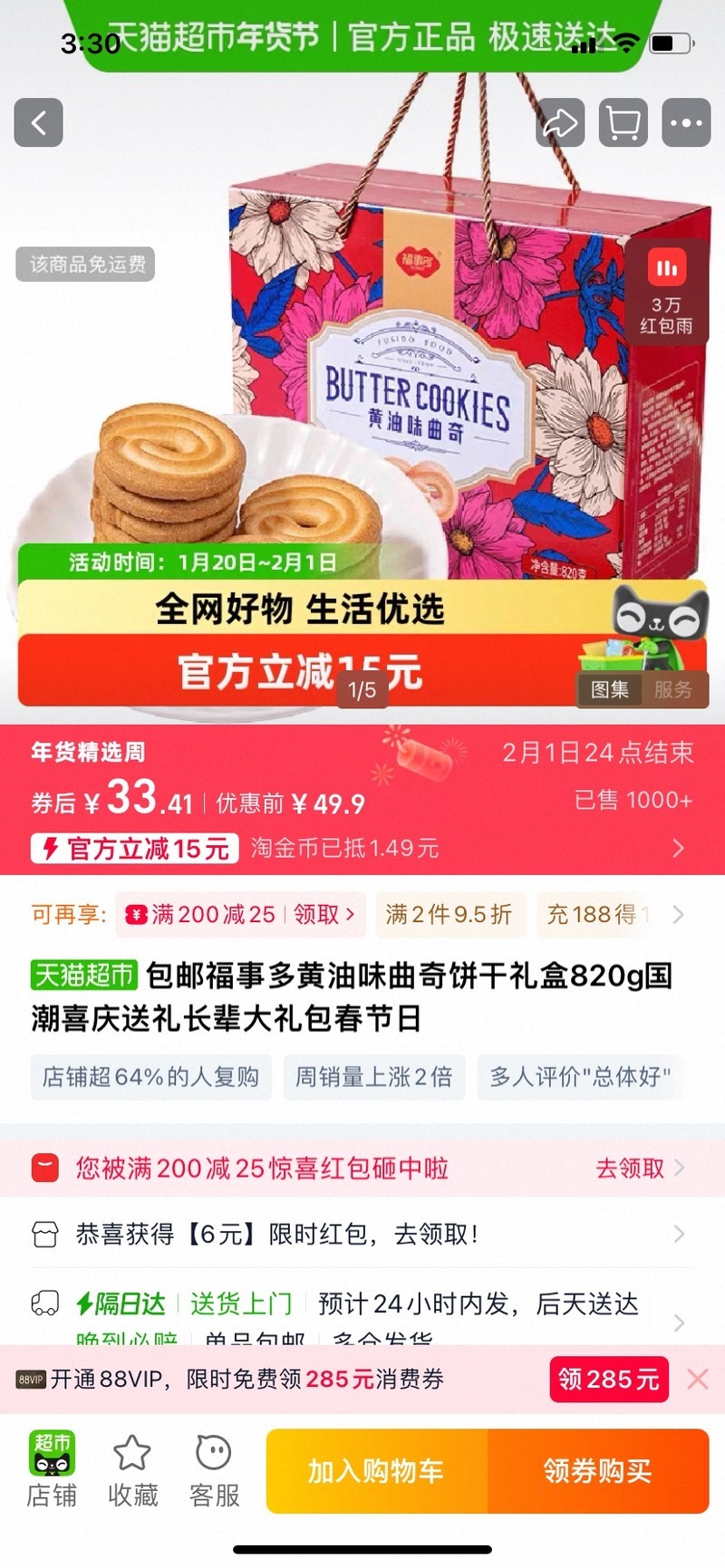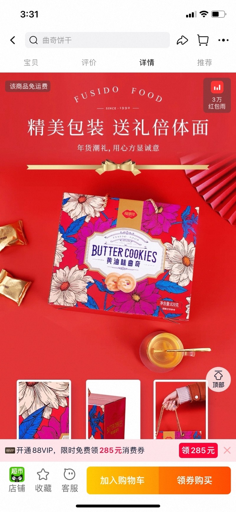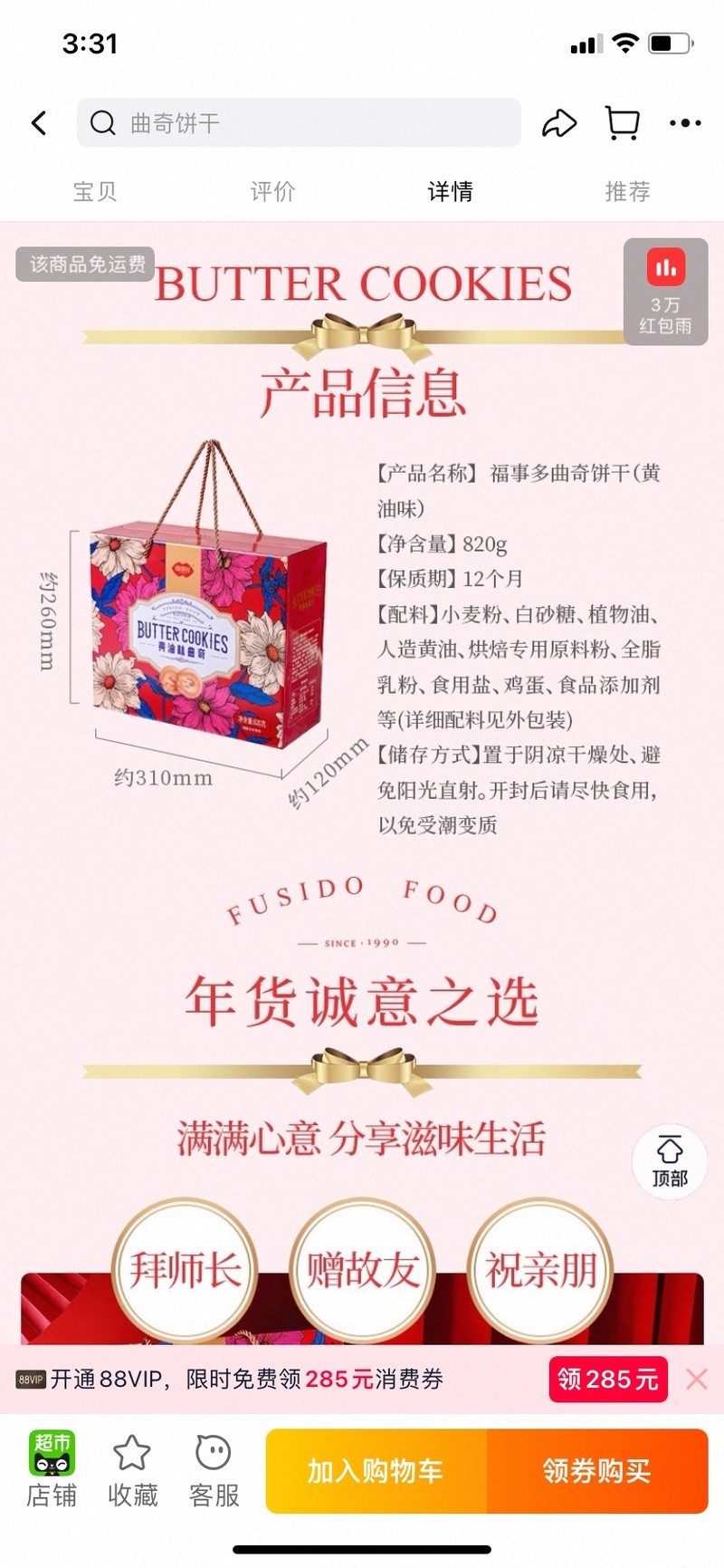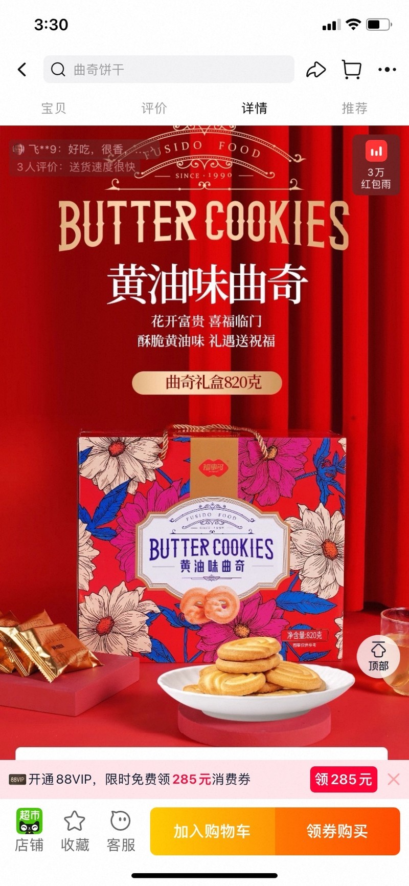 全新黄油味曲奇饼干礼盒820g新年送礼 [广告推广]