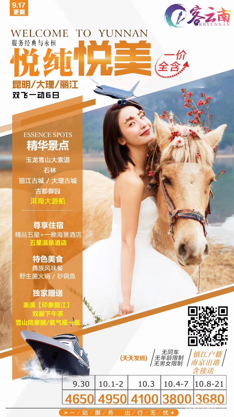 悦纯悦美 一价全含昆明/大理/丽江双飞6日游