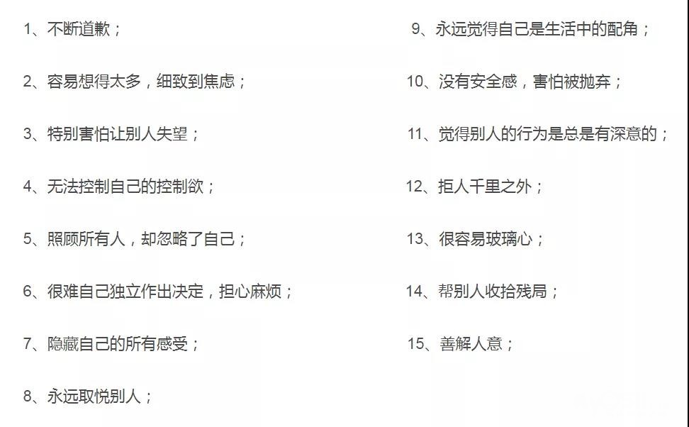 这条微博提及一名心理医生Juliette Virzi采访了那些在易怒父母陪伴下长大的孩子,并总结出了15个特点: