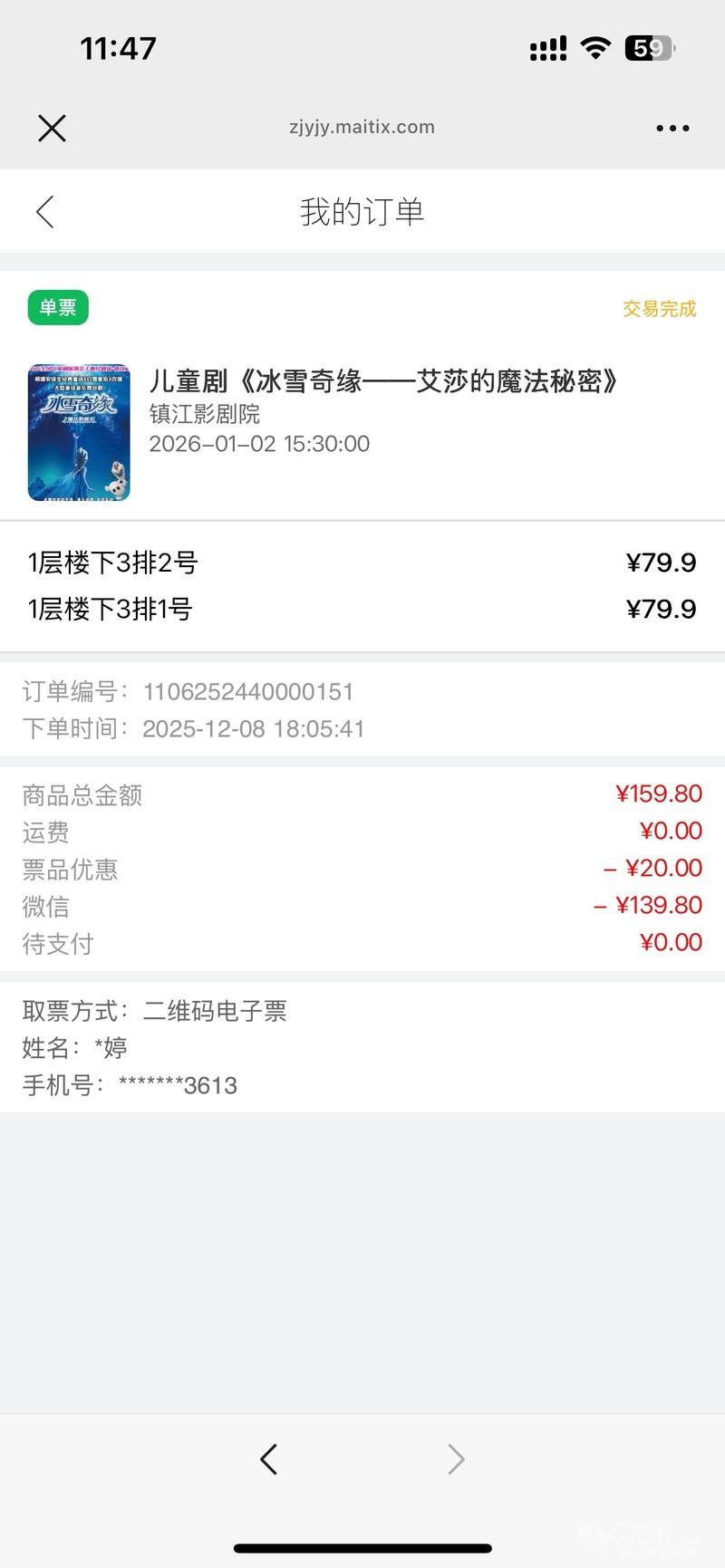 » 镇江冰雪奇缘表演票转让
